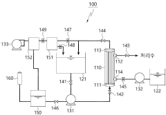 Integrity testing is crucial for ensuring the reliability and performance of hollow fiber membrane systems. Various methods are employed to detect breaches or failures in membrane integrity, including pressure decay tests, bubble point tests, and diffusive airflow measurements. These tests help identify compromised fibers that could allow contaminants to pass through the filtration system. Advanced integrity monitoring systems may incorporate continuous online testing capabilities that can detect failures in real-time, allowing for immediate intervention to maintain system performance and product quality.Expand Specific Solutions04 Lifespan extension strategies for hollow fiber membranes