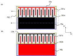 Technical Solution: KIST Corp. has developed an innovative hybrid piezoelectric-electrochemical sensing platform that leverages the synergistic effects of both sensing mechanisms. Their approach involves the use of nanostructured materials, such as zinc oxide nanowires, which exhibit both piezoelectric and electrochemical properties[4]. The platform incorporates a unique electrode design that allows for simultaneous measurement of mechanical stress and electrochemical reactions. KIST's technology has shown remarkable performance in detecting trace amounts of heavy metals and organic pollutants in water samples[5]. Additionally, they have demonstrated the platform's potential for wearable health monitoring applications, integrating it into flexible substrates for non-invasive biosensing[6].