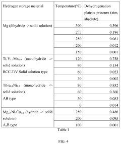 The dual-purpose application of hydrogen storage materials for both energy storage and thermal management represents a particularly promising market segment. Materials that can efficiently store hydrogen while simultaneously managing heat distribution could reduce overall system complexity and weight in EVs, potentially decreasing manufacturing costs by 15-20% compared to separate systems.