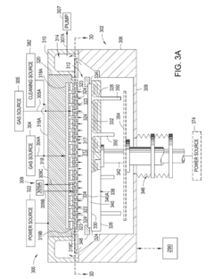Technical Solution:  Applied Materials has developed advanced PECVD (Plasma-Enhanced Chemical Vapor Deposition) systems specifically optimized for IGZO thin film deposition. Their AKT-PiVot™ DT PECVD system enables precise control over film composition and uniformity through multi-target sputtering technology. The system incorporates a rotatable magnetron sputtering source that allows for the deposition of high-quality IGZO films with controlled stoichiometry of indium, gallium, and zinc. Applied Materials has also pioneered the integration of in-situ monitoring capabilities that enable real-time adjustments during the deposition process, resulting in enhanced film quality and reduced defect density. Their technology achieves deposition rates of up to 100 nm/min while maintaining uniformity better than ±2.5% across large substrates (up to Gen 10.5), making it suitable for high-volume manufacturing of advanced display panels.