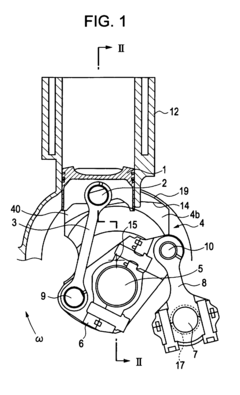 Technical Solution: Toyota has developed an innovative approach to improve crankshaft dynamics in their Triton Engine. They have implemented a dual-mass flywheel system with a pendulum-type absorber, which significantly reduces torsional vibrations[1]. This system works by counteracting the engine's inherent vibrations, resulting in smoother operation and reduced stress on engine components. Additionally, Toyota has optimized the crankshaft's counterweight design using advanced computer simulations, allowing for better balance and reduced overall engine weight[3]. The company has also introduced a new bearing material with improved friction characteristics, enhancing the crankshaft's rotational efficiency and durability[5].