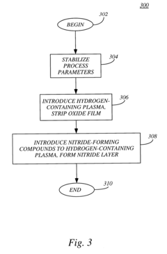- A method involving a hydrogen-containing plasma treatment with ammonia, followed by the introduction of silane and nitrogen to form a continuous plasma-enhanced CVD process, which reduces oxidation and promotes adhesion of subsequent insulating layers on semiconductor devices, specifically using a power range of 50-500 W and flow rates of 50-300 sccm for ammonia and 220 sccm for silane, performed in a controlled environment to minimize cross-contamination.
