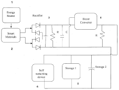 Technical Solution:  Texas Instruments has developed a comprehensive micro energy harvesting platform for wearable health monitoring systems centered around their ultra-low power BQ25570 integrated circuit. This solution combines high-efficiency energy harvesting with power management specifically designed for microwatt to milliwatt sources. Their technology employs a proprietary boost converter architecture that can start harvesting from sources as low as 100mV, making it ideal for thermoelectric and small photovoltaic harvesters in wearable form factors. TI's system includes advanced maximum power point tracking that dynamically adjusts to changing energy availability, battery management circuitry with overcharge protection, and configurable voltage regulation. The company has demonstrated this technology in glucose monitors, heart rate sensors, and temperature monitoring patches that can operate for extended periods without battery replacement by harvesting energy from body heat and ambient light.