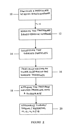 - 05 Novel additives and dopants for enhanced performanceIncorporating novel additives and dopants into ceramic thermal barrier coatings can significantly enhance their performance characteristics. Rare earth elements, transition metals, and other specialized compounds are used to modify the coating properties. These additives can lower thermal conductivity, improve phase stability, enhance sintering resistance, and increase mechanical strength. Research focuses on developing new dopant combinations that can extend coating lifetime under extreme thermal cycling and harsh environmental conditions.Expand Specific Solutions