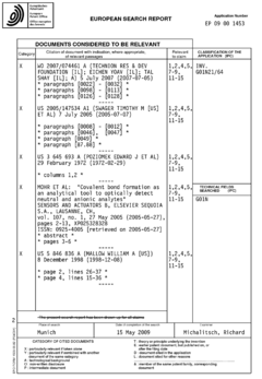 - The development of chemosensors with π-conjugated systems and nucleophilic or electrophilic moieties that react with target molecules, inducing changes in electromagnetic properties, allowing for identification through patterns of reaction-induced changes in these properties.