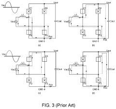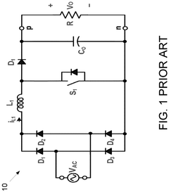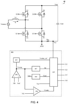 Various electromagnetic interference (EMI) mitigation techniques are implemented in totem-pole PFC and LLC converter topologies to meet stringent automotive EMC standards. These include optimized PCB layout design, common-mode noise suppression filters, spread spectrum frequency modulation, and strategic placement of EMI filters. Advanced gate driving techniques and careful component selection help reduce conducted and radiated emissions while maintaining high power conversion efficiency.Expand Specific Solutions04 Digital Control Strategies for Totem-Pole PFC and LLC Converters