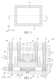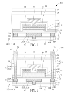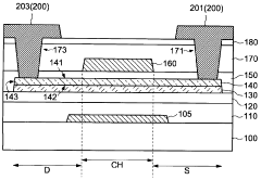 Technical Solution: Samsung has developed advanced oxide semiconductor technology focusing on indium-zinc-oxide (IZO) and indium-gallium-zinc-oxide (IGZO) materials for display applications. Their research has yielded high-performance oxide TFTs with field-effect mobility exceeding 20 cm²/Vs while maintaining excellent uniformity across large substrates. Samsung's approach involves precise control of oxygen partial pressure during deposition and post-deposition annealing to optimize electrical properties. They've implemented multi-layer oxide semiconductor structures with carefully engineered interfaces to enhance stability against bias stress and illumination. Their proprietary passivation techniques using silicon nitride and aluminum oxide layers effectively suppress ambient degradation mechanisms. Samsung has also pioneered the integration of oxide semiconductors with flexible substrates, developing specialized low-temperature processes that maintain electrical performance while enabling bendable displays. Their research includes compensation circuit designs that mitigate threshold voltage shifts over time, ensuring consistent display performance throughout device lifetime.
