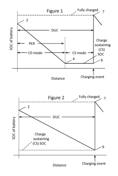 Advanced diagnostic tools and algorithms are employed to monitor and predict the state of health of PHEV batteries. These systems analyze battery performance data over time to identify potential issues early and implement preventive measures, thus enhancing overall durability.Expand Specific Solutions04 Adaptive charging strategies for extended battery life