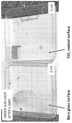 - A photocatalytic coating of photocatalytic semiconductor material is applied to the substrate, which becomes superhydrophilic when irradiated with light above its bandgap energy, creating a uniform water film and preventing water droplet formation, and maintaining hydrophilicity even in the presence of contaminants.