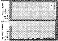 Strengths: Long-lasting anti-fouling effect without chemical additives; environmentally friendly solution that reduces cleaning frequency and chemical use; proven commercial success in architectural applications. Weaknesses: Requires light exposure to maintain effectiveness; initial cost higher than conventional surfaces; performance may degrade over time in harsh environments.
