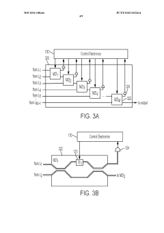 Technical Solution: IBM has pioneered silicon nanophotonics technology for industrial automation applications, focusing on ultra-dense integration of optical and electrical components. Their platform incorporates optical transceivers directly onto CMOS chips, achieving data rates of 25 Gbps per channel with multiplexing capabilities that enable aggregate bandwidths exceeding 1 Tbps. IBM's approach utilizes wavelength division multiplexing (WDM) with up to 64 channels on a single waveguide. For industrial automation, IBM has developed specialized photonic integrated circuits that maintain signal integrity across factory floors spanning hundreds of meters while consuming only 5pJ/bit of energy. Their technology incorporates radiation-hardened designs suitable for harsh industrial environments where electromagnetic interference is prevalent. IBM has also implemented on-chip optical sensing capabilities that enable real-time monitoring of manufacturing processes with nanometer-scale precision, facilitating advanced quality control in production lines.
