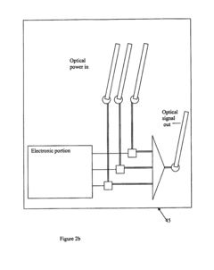 Photonic integrated circuits are enabling emerging applications in quantum computing, sensing, and communications. These specialized PICs incorporate components for generating, manipulating, and detecting quantum states of light, such as single-photon sources, entangled photon pair generators, and quantum gates. Other specialized applications include integrated optical gyroscopes, LiDAR systems for autonomous vehicles, biomedical sensing platforms, and microwave photonics for signal processing in telecommunications.Expand Specific Solutions05 Packaging and integration with electronics
