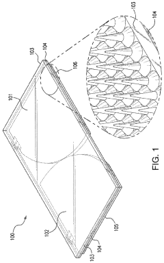 Technical Solution: Corning has developed Willow® Glass, an ultra-thin (100 microns) flexible glass substrate with specialized coatings for high-performance aerospace photovoltaics. Their technology combines the thermal stability and hermeticity of glass with flexibility previously only available in polymer substrates. Corning's coating system incorporates multi-functional layers including anti-reflective coatings that reduce surface reflection to below 1% across the solar spectrum, significantly improving light capture efficiency. Their proprietary ion-exchange strengthening process creates a compressive surface layer that dramatically improves impact and scratch resistance without affecting optical properties. For aerospace applications, Corning has developed specialized transparent conductive oxide coatings with self-healing properties that can recover from micrometeoroid impacts. Their glass also features engineered thermal emissivity coatings on the non-sun-facing side that help regulate operating temperature in the vacuum of space, keeping photovoltaic cells within optimal operating temperature ranges.