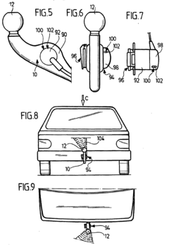 Technical Solution: Ford has developed an advanced Pintle Hitch system integrated with sensor technology for enhanced safety. Their solution incorporates multiple sensors, including load cells and strain gauges, to monitor the trailer's weight distribution and coupling forces in real-time[1]. The system uses machine learning algorithms to analyze sensor data and predict potential instability or unsafe conditions[2]. Ford's technology also includes a camera-based system for automated hitching and unhitching, improving ease of use and reducing the risk of improper attachment[3]. Additionally, they have implemented wireless communication between the vehicle and trailer to provide the driver with real-time information on trailer status and any potential issues[4].