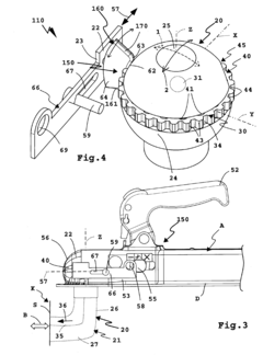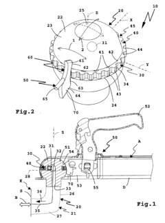 Anti-theft features are incorporated into pintle hitch designs to prevent unauthorized use or theft. These may include keyed locks, removable components, or integration with vehicle security systems, adding an extra layer of safety when the vehicle is parked or unattended.Expand Specific Solutions05 Ergonomic and user-friendly designs