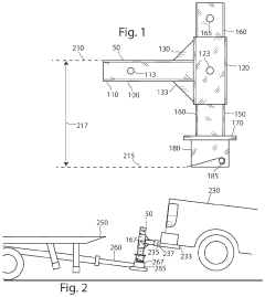 Technical Solution: Ford Global Technologies LLC has made significant strides in pintle hitch safety for high-capacity freight handling. Their research has led to the development of an adaptive coupling system that automatically adjusts its configuration based on the load and driving conditions[1]. This system utilizes advanced AI algorithms to predict and compensate for potential instabilities during transit. Ford has also integrated their pintle hitch design with the vehicle's electronic stability control system, allowing for real-time adjustments to improve overall vehicle dynamics when towing heavy loads[2]. Additionally, they have developed a novel anti-jackknifing technology specifically for pintle hitch applications, which employs selective braking and torque vectoring to maintain trailer alignment in challenging situations[3]. The company has also introduced a wireless communication system between the towing vehicle and trailer, enabling constant monitoring of crucial parameters such as temperature, pressure, and load distribution[4].