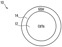 Polymer encapsulation provides an effective method for stabilizing quantum dots against environmental degradation. By embedding quantum dots within polymer matrices or coating them with polymer layers, their resistance to oxidation, moisture, and thermal stress is significantly improved. This approach also enables better dispersion in various media and prevents aggregation, which is crucial for maintaining optical properties and extending the functional lifetime of quantum dot-based devices.Expand Specific Solutions04 Environmental stability enhancement methods