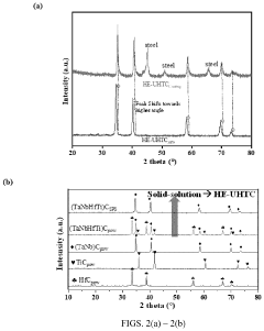 - Applications of UHECs in extreme environments: Ultra-High Entropy Ceramics are finding applications in environments where conventional materials fail due to extreme conditions. Their exceptional radiation tolerance makes them suitable for nuclear reactor components, waste immobilization matrices, and space vehicle thermal protection systems. The enhanced ionic transport properties of certain UHEC compositions enable their use in high-temperature electrochemical devices operating in harsh environments. Additionally, these materials show promise for fusion energy systems, where they must withstand intense neutron bombardment while maintaining structural integrity and functional properties. The multifunctional nature of UHECs allows them to address multiple challenges simultaneously in extreme operating conditions.