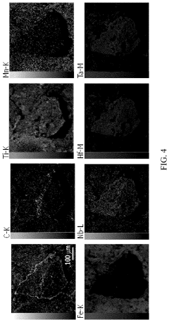 - Compositional design strategies for UHECs: The performance of Ultra-High Entropy Ceramics can be systematically enhanced through strategic compositional design. By incorporating elements with varying atomic radii, electronegativity, and valence states, researchers can create UHECs with tailored properties for specific applications. The selection of constituent elements affects the material's radiation tolerance by influencing defect formation energies and recombination rates. Similarly, ionic transport can be optimized by including elements that create favorable diffusion channels or modify the local charge environment. Computational methods are increasingly being used to predict optimal compositions before experimental validation.