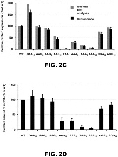 - Genetic factors affecting ribosome stalling: Various genetic elements influence ribosome stalling, including specific mRNA sequences, rare codons, and regulatory elements. These genetic factors can be natural control mechanisms or pathological features in certain diseases. Research has identified specific sequence motifs that induce programmed ribosome stalling, which can serve regulatory functions in gene expression or contribute to disease pathology when dysregulated.