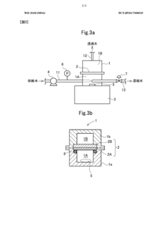 Technical Solution: Toyobo has pioneered advanced polymer chemistry approaches to address RO membrane aging through their proprietary "Holistic Membrane Preservation" technology. Their research focuses on the molecular-level understanding of oxidation pathways in polyamide thin-film composite membranes, resulting in the development of sacrificial antioxidant moieties integrated directly into the polymer backbone. These specialized chemical structures preferentially react with oxidizing agents before they can damage critical membrane components. For hydrolysis resistance, Toyobo has developed a unique hydrophobic coating technology that creates a protective barrier against water molecules that would otherwise catalyze hydrolytic degradation of the polyamide bonds. Their mechanical fatigue research has led to the creation of a nano-reinforced support layer with specialized fiber orientation that distributes mechanical stress more effectively, reducing localized strain during pressure cycling operations. Toyobo's membranes incorporate self-healing polymer networks that can partially restore membrane integrity after minor damage events, extending operational lifetime by an estimated 30-40% compared to conventional membranes.