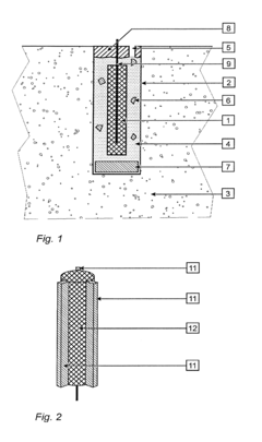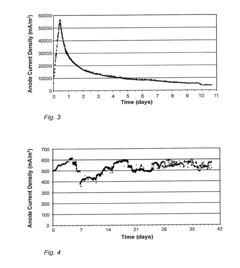 Technical Solution: Sumitomo Electric has developed an innovative sacrificial anode system incorporating nano-engineered backfill materials that significantly enhance electrical performance and moisture retention properties. Their NanoMatrix™ technology utilizes carbon nanostructures dispersed within a mineral matrix to create conductive pathways that maintain low resistivity (typically 30-45 ohm-cm) even during seasonal moisture fluctuations. The company's approach includes a gradient backfill design where particle size and composition vary from the anode surface outward, optimizing both electrical contact and moisture management. Sumitomo's system incorporates hydrogel components that act as moisture reservoirs, slowly releasing water during dry conditions while maintaining structural integrity. Their research has demonstrated that this approach reduces anode consumption rates by approximately 25% compared to conventional systems while maintaining consistent protection current. The bond integrity between anode and backfill is enhanced through proprietary surface treatment of the anode material that promotes chemical bonding with specific components in the backfill mixture, creating a robust interface that resists separation even under mechanical stress conditions.