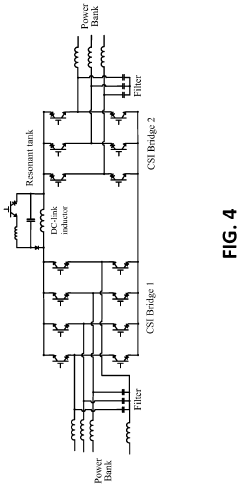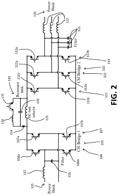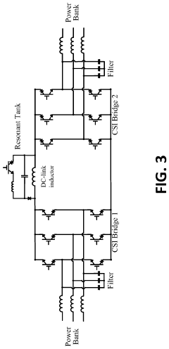 - The development of a soft-switching current source inverter (SSCSI) topology, comprising a first and second CSI bridge, a DC-link inductor, and a resonant tank, which enables zero-voltage switching and bi-directional power flow, reducing common-mode voltage, and improving efficiency and dynamic performance.