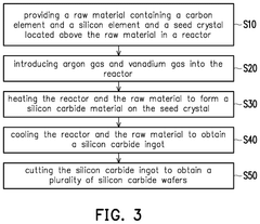 Engineering the substrate structure can significantly improve silicon carbide wafer flexibility. This includes creating engineered substrates with buffer layers, using composite structures, or incorporating stress-relief features. These approaches help distribute mechanical stress more evenly throughout the wafer, allowing for improved flexibility while maintaining the electrical and thermal properties that make silicon carbide valuable for power electronics and high-temperature applications.Expand Specific Solutions04 Crystal growth techniques affecting wafer flexibility