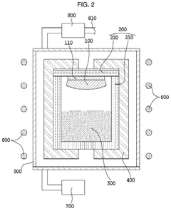 Advancements in large diameter silicon carbide wafer production address the challenges of scaling up wafer size while maintaining quality. These developments include modified crystal growth techniques, specialized handling equipment, and process adaptations to accommodate larger wafers. Larger diameter wafers enable more efficient device manufacturing and reduced production costs for silicon carbide-based electronics.Expand Specific Solutions