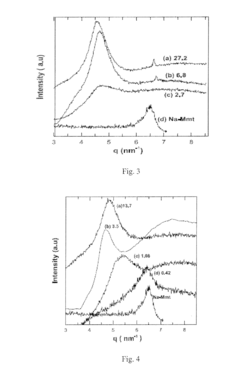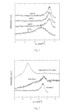 Polymer-clay nanocomposites find applications in diverse industries, including automotive, packaging, and electronics. These materials offer improved mechanical strength, thermal stability, and barrier properties, making them suitable for use in lightweight structural components, food packaging, and flame-retardant materials.Expand Specific Solutions04 Optimization of clay content and dispersion
