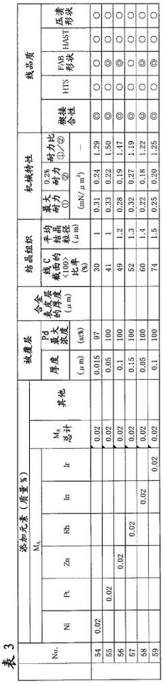 - The Cu alloy core material is used and a Pd coating layer is formed on its surface, including elements that impart connection reliability in high temperature environments, such as Ni, Zn, Rh, In, Ir, Pt, etc., to control the crystal orientation and crystal grain size to improve the The endurance ratio of the bonding wire is in the range of 1.1 to 1.6.