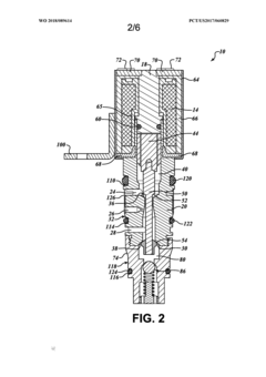 Efforts have been made to develop energy-efficient solenoid valve designs that reduce power consumption without compromising performance. These designs may include improved magnetic circuits, low-power actuators, or energy recovery mechanisms. Such innovations can lead to significant energy savings in applications where solenoid valves are used extensively.Expand Specific Solutions04 Miniaturization of solenoid valves