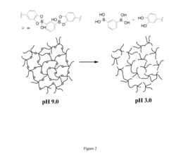 - Development of pH-responsive, self-healing hydrogels formed through boronic acid-catechol complexation, using cross-linked polymers with catechol moieties and boronic acid moieties to create covalent tetrahedral boronate ester bonds, which are reversible under acidic conditions, allowing for gel formation and self-healing under physiological conditions.