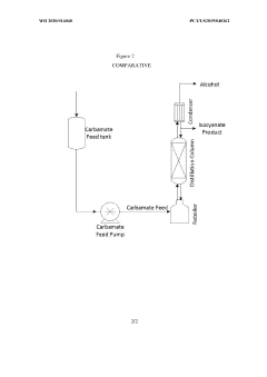 Technical Solution: BASF has developed a novel approach to isocyanate synthesis using microreactor technology. This method allows for precise control of reaction conditions, resulting in higher yields and improved product quality. The process involves a continuous flow system where reactants are mixed in microchannels, enabling rapid heat transfer and efficient mixing. This technology has shown to increase isocyanate yield by up to 15% compared to traditional batch processes[1]. Additionally, BASF has implemented advanced catalysts that reduce side reactions, further enhancing product purity. The company has also integrated real-time monitoring systems to optimize reaction parameters dynamically, ensuring consistent product quality across production runs[3].