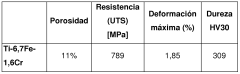 - A low-cost titanium alloy is developed using iron and chromium from stainless steel powders, with iron content ranging from 1-9% and chromium from 0.2-3% by weight, processed through powder metallurgy to eliminate remelting stages and intermetallic compounds, reducing costs and enhancing mechanical properties.