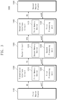- A memory-based neuromorphic interface system with asynchronous interface circuits that store and process data in memory devices before transmission, allowing for continuous operation without waiting for complete data delivery, thereby minimizing delays and errors.