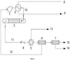 - Employing an inert chemical fluid with a boiling point between 30-220°C, which is vaporized to heat the adsorbent bed and act as a sweep gas for CO2 desorption, then cooled for separation, ensuring efficient heat transfer and minimizing interaction with adsorbent materials.
