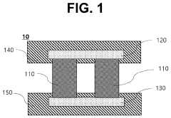 Technical Solution: IMEC has developed an advanced thermoelectric module integration platform for wearable applications that focuses on ultra-low power operation and miniaturization. Their technology utilizes silicon-based MEMS fabrication techniques to create highly integrated thermoelectric structures with feature sizes below 10 micrometers. This approach enables unprecedented integration density and thermal response times. IMEC's solution incorporates novel semiconductor materials including silicon-germanium superlattices and skutterudite compounds that offer improved figure of merit (ZT) values compared to conventional bismuth telluride. Their platform includes specialized thermal interface materials that maximize heat transfer between the skin and the thermoelectric elements while maintaining wearer comfort. IMEC has pioneered advanced power management circuitry that enables dynamic adjustment of thermoelectric operation based on activity levels and environmental conditions. Their technology also features wireless power transfer capabilities specifically optimized for wearable thermoelectric applications, eliminating the need for bulky batteries in certain use cases. The platform includes comprehensive sensor integration for closed-loop temperature control and physiological monitoring.