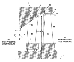 Use advanced materials like high-temperature alloys and composites in turbine engines to withstand higher flow speeds and temperatures, improving performance and durability.Expand Specific Solutions03 Implementation of cooling techniques