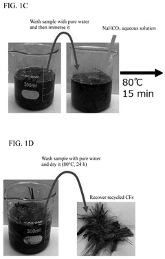 Technical Solution: SGL Carbon has developed an advanced recycling process for carbon fiber composites using a proprietary ammonium hydroxide-based solvolysis technique. Their method employs a carefully controlled pH and temperature profile to optimize the decomposition of various resin systems, including challenging thermoplastic matrices. The process achieves a fiber recovery rate of 96-99%, with the reclaimed fibers maintaining up to 95% of their original tensile strength[10]. SGL Carbon's technology incorporates a multi-stage filtration system to remove resin residues and contaminants, producing exceptionally clean fibers. The company has also developed a novel resin recovery method that converts the dissolved epoxy into valuable chemical precursors, creating additional value streams from the recycling process[11]. SGL Carbon's recycling plants are designed with a modular architecture, allowing for easy scaling and adaptation to different composite waste streams[12].