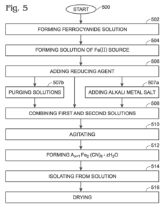 Precise control of reaction parameters during Prussian White synthesis can significantly reduce residual metal content. These parameters include temperature, pH, reaction time, and reagent concentration ratios. By optimizing these conditions, the formation of unwanted metal complexes can be minimized, leading to lower residual iron and copper levels in the final product. Controlled oxidation-reduction environments also play a crucial role in preventing metal contamination.Expand Specific Solutions03 Chelating agents for metal ion sequestration