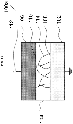 RRAM devices operate based on the formation and rupture of conductive filaments within an insulating layer, causing resistance changes between high and low resistance states. The switching mechanism typically involves oxygen vacancy migration, metal ion movement, or phase changes in the switching material. These devices can be operated in unipolar or bipolar switching modes, with different voltage polarities controlling the set and reset processes. Understanding these mechanisms is crucial for optimizing device performance and reliability.Expand Specific Solutions03 Integration and fabrication techniques