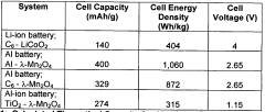 - Electrolyte composition for Al-ion batteries: The electrolyte composition plays a vital role in the reversibility of aluminum intercalation cathodes. Researchers are developing novel electrolyte formulations that facilitate efficient aluminum ion transport while minimizing side reactions. These electrolytes aim to improve the cycling stability and coulombic efficiency of Al-ion batteries.
