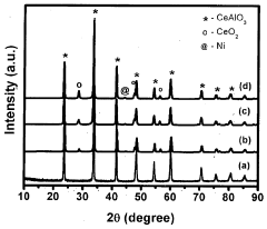 - A Ruthenium-promoted nickel-based CeAlO3 perovskite catalyst with specific doping levels is developed, providing stability at high temperatures and in the presence of steam and reducing gases, and is synthesized using the citrate gel method to maintain catalytic activity over extended periods.
