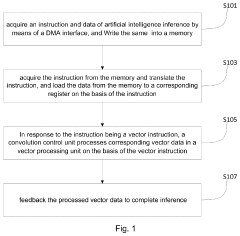 - A RISC-V-based artificial intelligence inference method and system that utilizes a Direct Memory Access (DMA) interface to acquire and process instructions and data, employing a convolution control unit and vector processing unit to perform vector operations, and an arithmetic/logic operation unit for scalar operations, enabling efficient AI inference calculations.