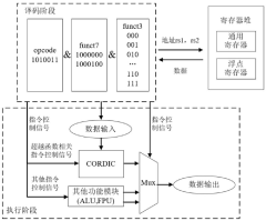 - A floating-point transcendental function instruction set extension method based on RISC-V is designed. By introducing the CORDIC unit and FPU unit into the RISC-V architecture, a parallel floating-point fusion multiplier-accumulator, floating-point adder and multiplier are used to form The iterative structure supports the IEEE-754 standard floating point data type and provides specialized transcendental function instructions to achieve high-precision calculations of trigonometric and hyperbolic functions.