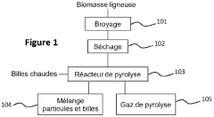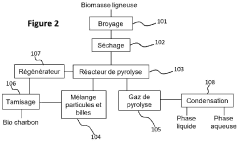 Technical Solution: Nanjing Forestry University has developed a novel approach to studying wood pyrolysis using micro-calorimetry techniques. Their method focuses on the use of microscale combustion calorimetry (MCC) to analyze the heat release rate and total heat release during wood pyrolysis[3]. This technique allows for the characterization of different wood species and their components (cellulose, hemicellulose, and lignin) with minimal sample sizes. The university has also integrated this approach with spectroscopic methods like FTIR to correlate thermal events with chemical changes during pyrolysis[4]. Their research has led to improved understanding of the influence of wood composition on pyrolysis behavior and product distribution.