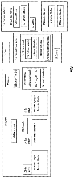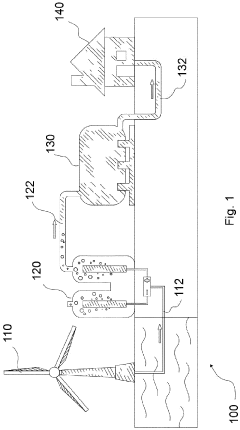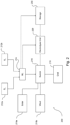 Technical Solution: Hydrogenics Corp. has pioneered machine learning applications in PEM (Proton Exchange Membrane) electrolysis for green hydrogen production. Their ML-driven approach focuses on optimizing the electrolyzer stack performance through real-time monitoring and adjustment of over 200 operational parameters. The system employs ensemble learning techniques combining random forests and gradient boosting algorithms to predict optimal membrane hydration levels, current density distribution, and temperature profiles across the stack. This has resulted in efficiency improvements of 8-12% compared to conventional control systems. Hydrogenics' ML models also incorporate weather forecasting data to optimize operations when connected to renewable energy sources, enabling dynamic response to fluctuating power inputs from wind and solar. Their predictive analytics platform can forecast stack degradation patterns, extending electrolyzer lifetime by up to 25% while maintaining high efficiency.