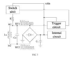 - A half-duplex RFID oscillation maintenance circuit with trigger-based pulse generation, utilizing a Schmitt trigger circuit to generate self-adaptive rectangular wave signals for controlling current injection into the L-C resonance circuit, ensuring efficient energy use and maintaining oscillation amplitude without frequency drift.