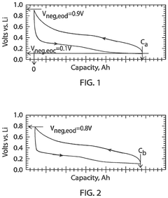 - A method involving a secondary battery design with a negative electrode of anodically active silicon and a positive electrode of cathodically active material, where carrier ions are transferred between electrodes to form an SEI, and an auxiliary electrode is used to replenish lost capacity, maintaining specific voltage limits to inhibit crystalline phase formation and enhance energy density.